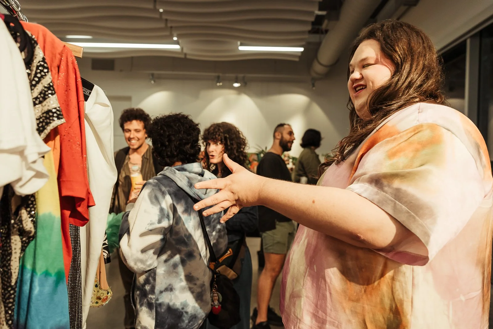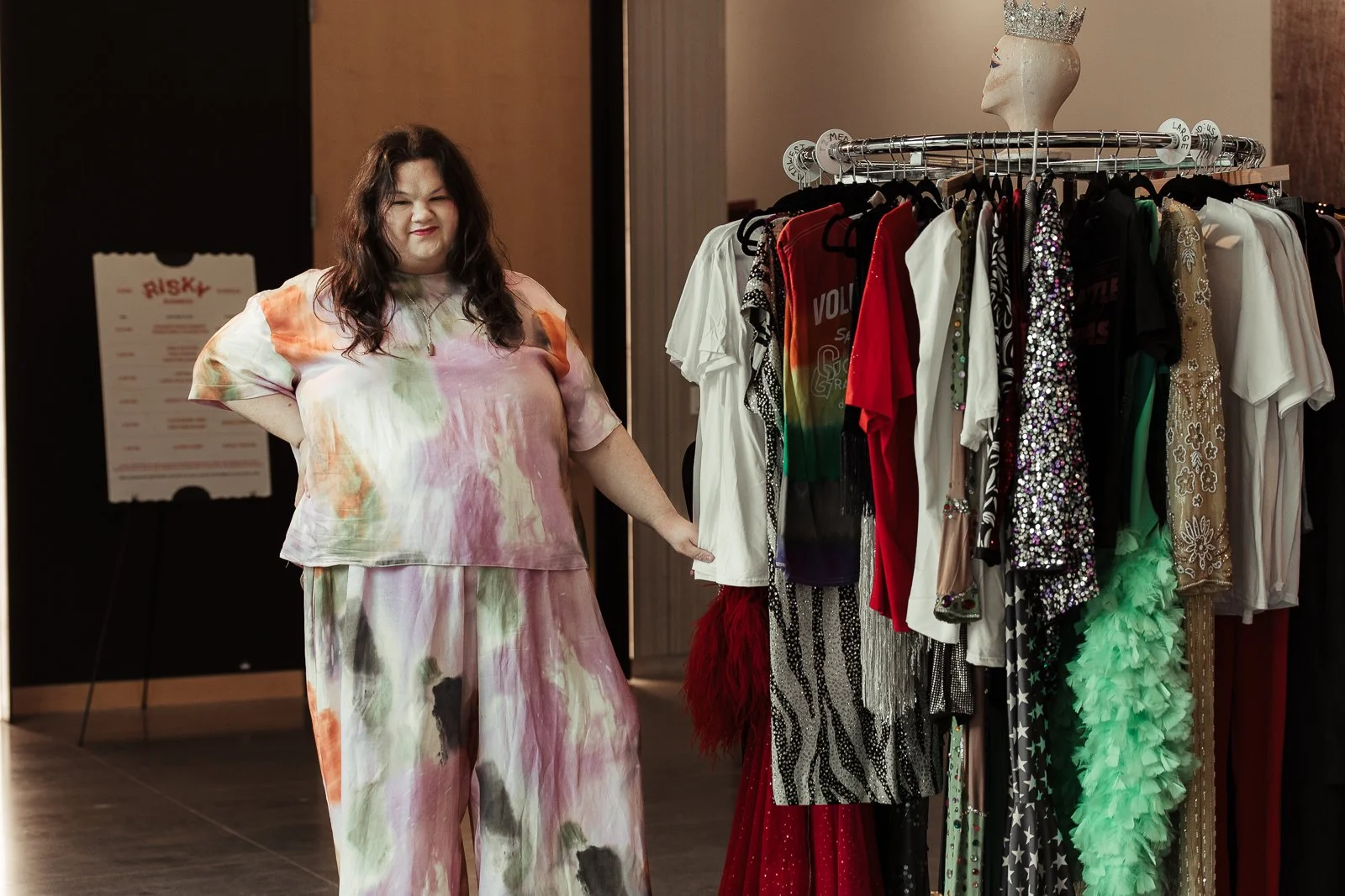 When you’re shopping, you’re having the autonomy to express whoever you want to be and that is an imperative part dissected in the bravery of the Queer experience. I chose the clothing rack to display the poems and outfits because the audience must re-visit this exploration of expression, confidently making choices, and have a personal experience with the poetry and people that create the sculpture.