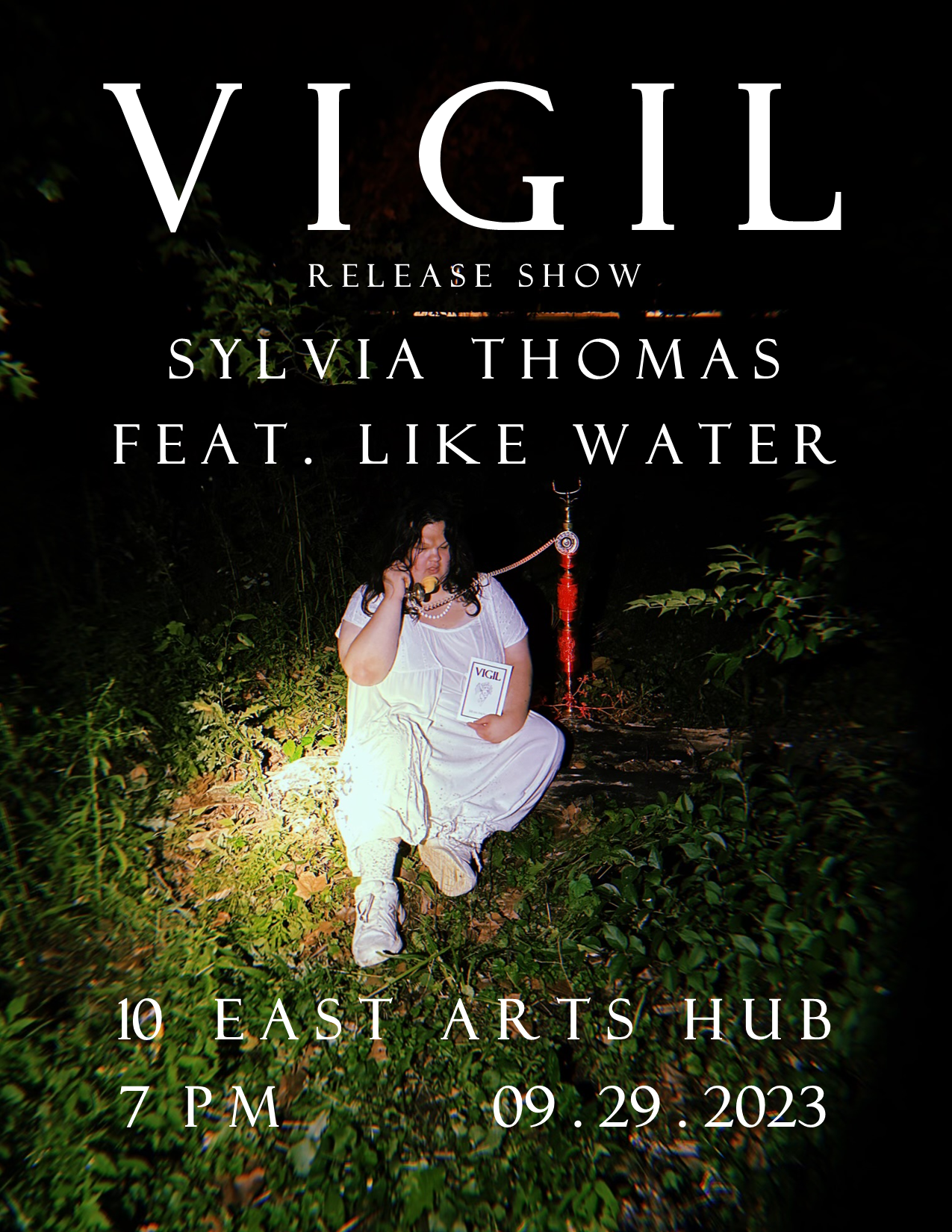 Sylvia’s third chapbook, VIGIL, explored ideas of grief and identity. She released the Chapbook on her birthday, September 29, 2023 at the Tube Factory artspace. At her release show, Like Water performed original music, followed by Sylvia’s reading and performance of this new body of work.